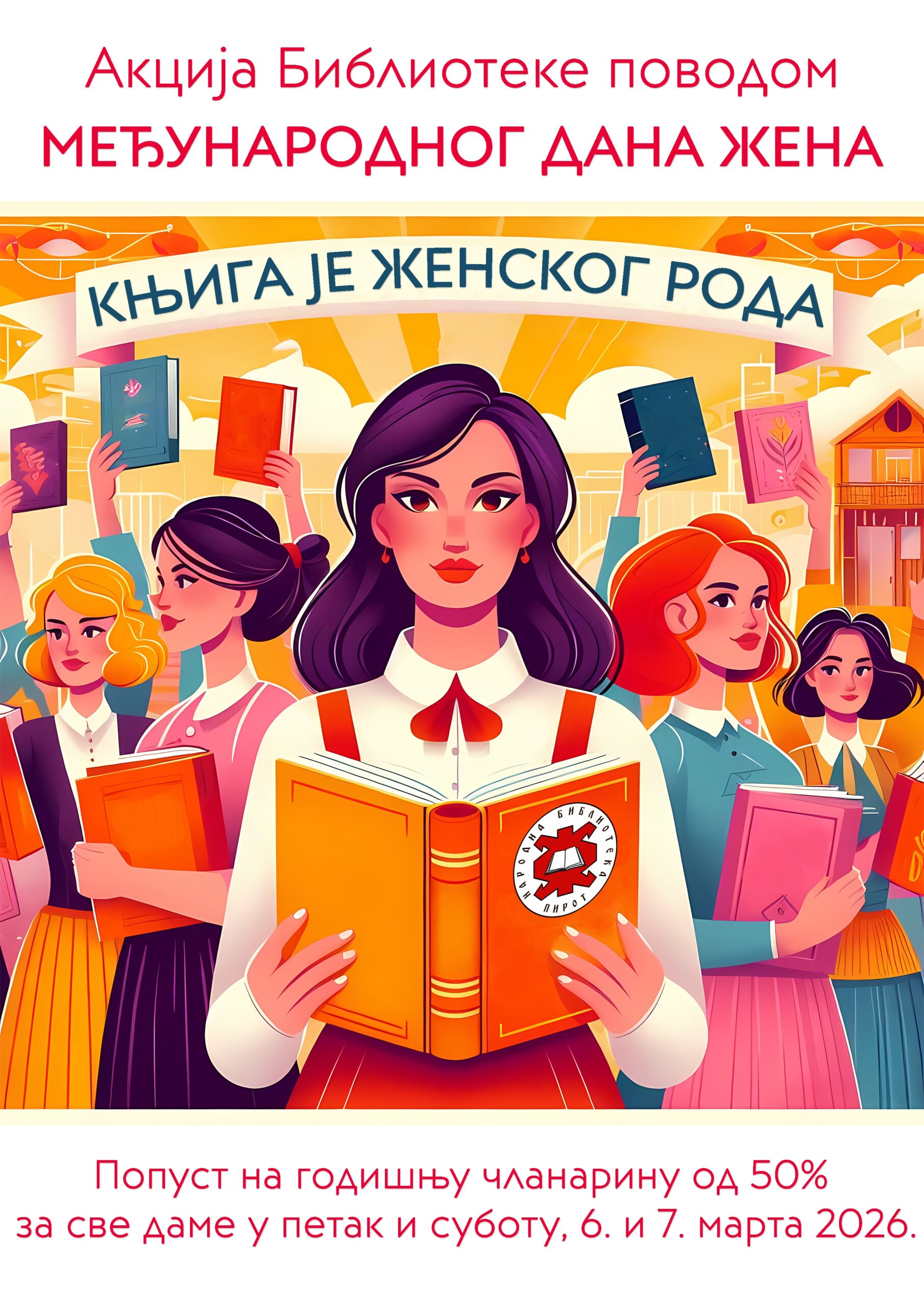 Pod sloganom „Knjiga je ženskog roda“, sve dame će moći u petak i subotu, 6. i 7. marta 2026. godine, da se učlane ili obnove godišnju članarinu uz popust od 50 odsto.