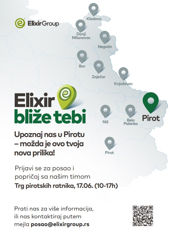Jedan od najvećih poslodavaca u istočnoj i jugoistočnoj Srbiji, kompanija Elixir Group-a krajem maja pokrenula je kampanju „Elixir bliže tebi“ kako bi njihov Tim za ljudske resurse u gradovima ovog regiona predstavio kompanijske projekte i aktivnosti u neposrednim razgovorima sa kandidatima za različite pozicije u Elixir Prahovu i Elixir Craft-u. Ovaj „mali karavan“ za zapošljavanje, do sada je stigao do Negotina, Zaječara i Knjaževca, a naredne sedmice posetiće Leskovac, Pirot, Belu Palanku i Niš. Da se ovakva potraga za kandidatima koji će popuniti neka od 200 novih radnih mesta, pokazala kao veoma uspešna, potvrđuje Teodora Mišić, saradnica za brendiranje i akviziciju talenata Elixir Group-e.