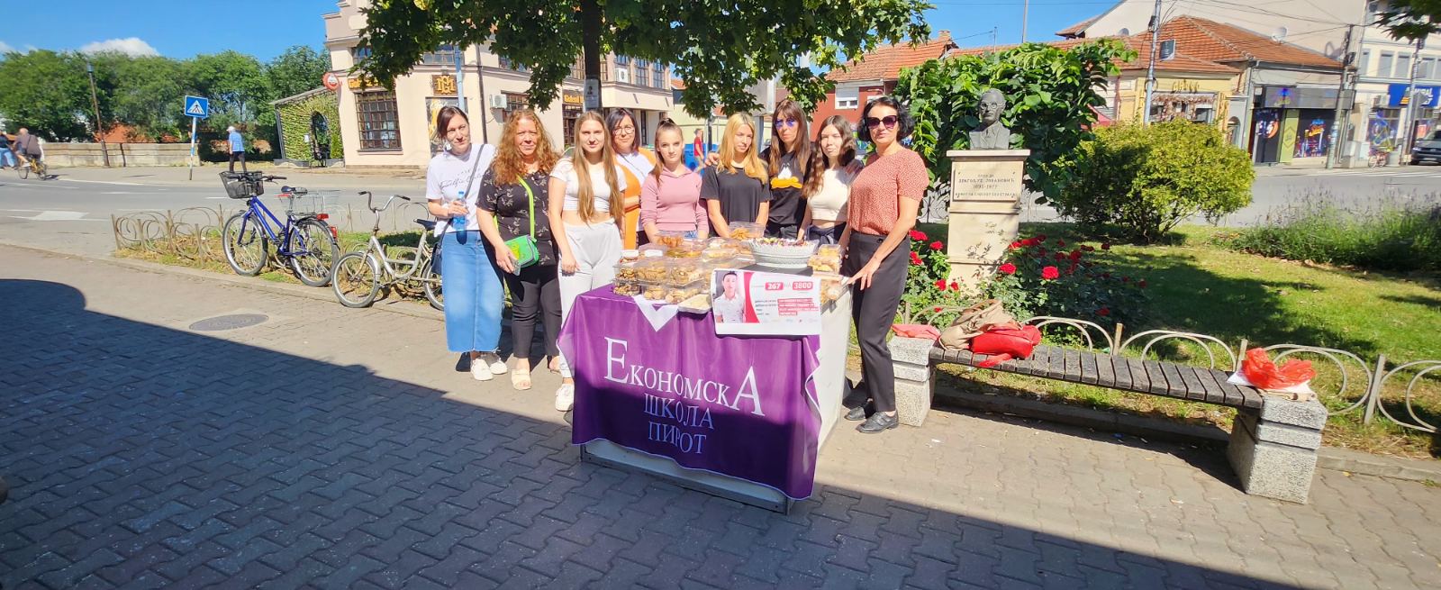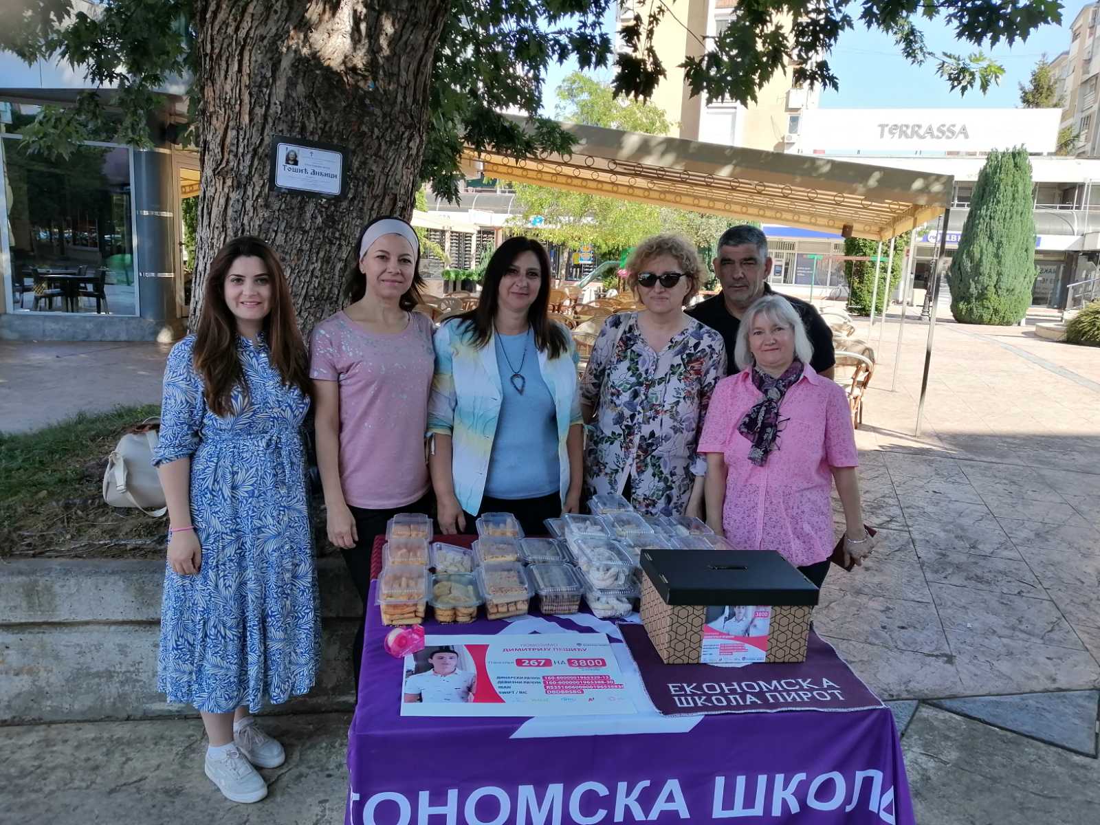 Učenici i nastavno osoblje Ekonomske škole Pirot organizovali su humanitarnu prodaju slanih i slatkih jela iz domaće radinosti kolektiva Ekonomske škole Pirot. Humanitarna akcija organizovana je u cilju prikupljanje novčanih sredstava za učenika ove škole, Dimitrija Pešića, kome je potrebna proteza donjeg ekstremiteta. Prodajni štandovi su bili kod Guševice i na Trgu oslobodilaca Pirota.