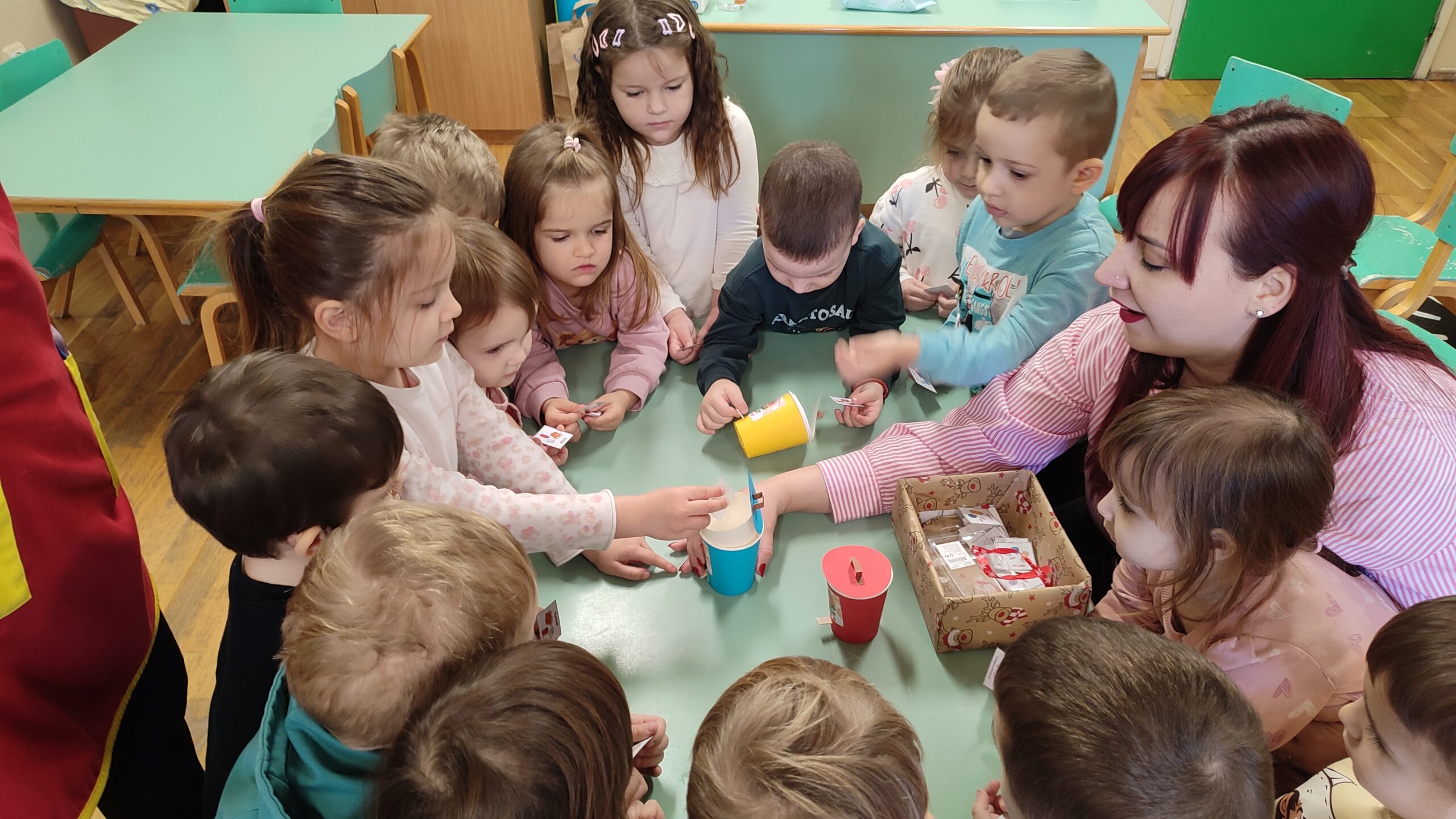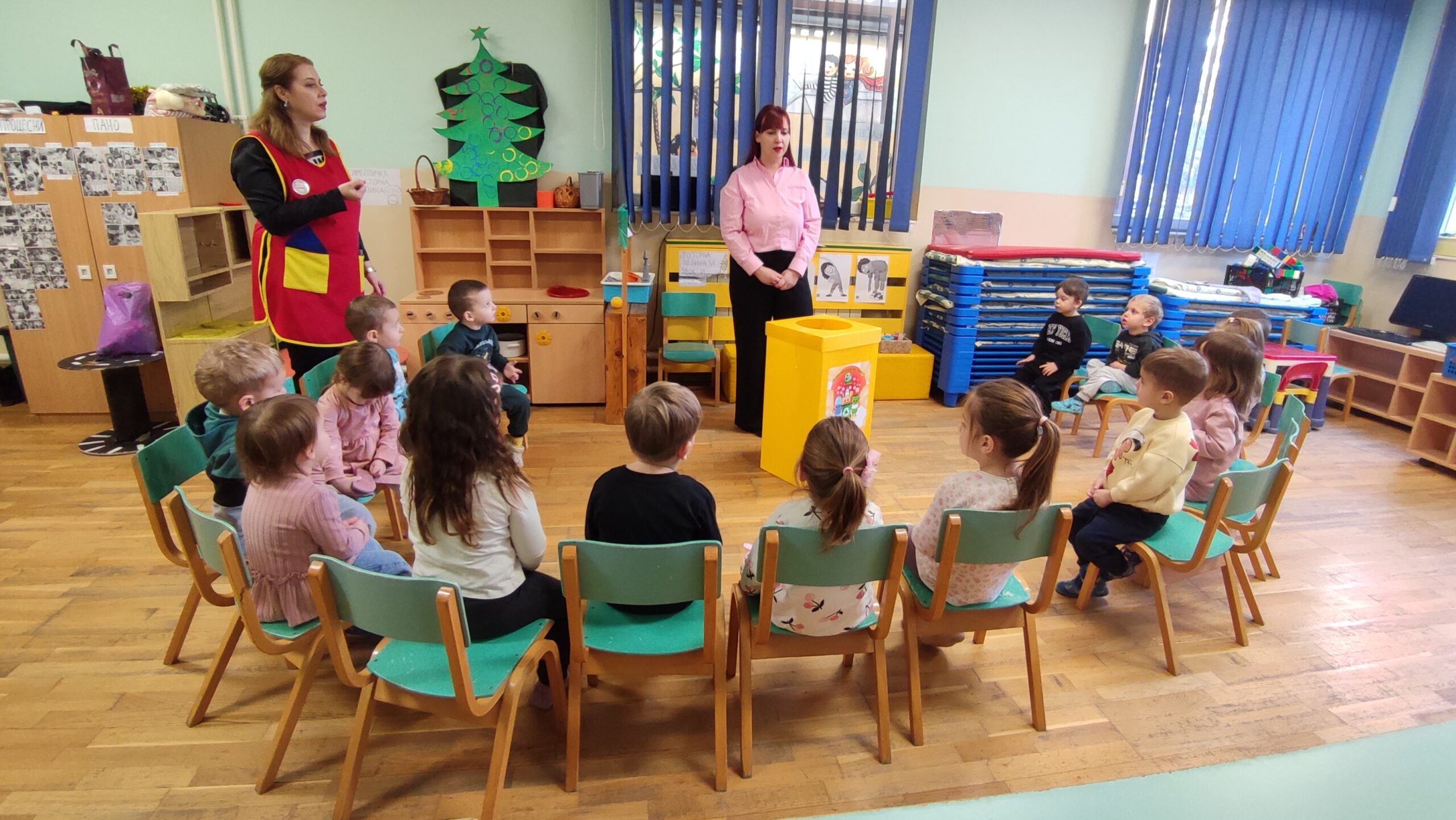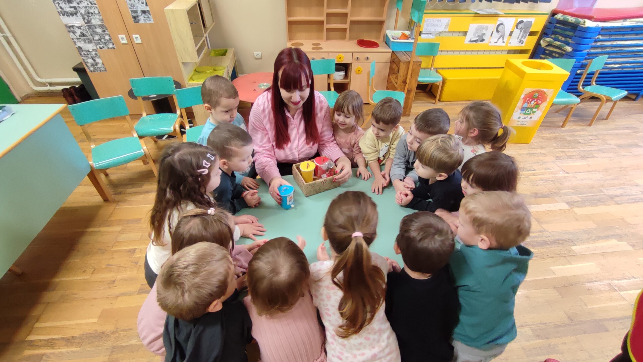 Ona je deci donela edukativnu ekološku igračku – maketu kanti za selektovanje otpada, sa kojom su deca imala zadatak da kartonske kartice sa prikazanim otpadom razvrstaju po boji i ubace u odgovarajuću kantu. Ovaj deo aktivnosti mališanima je bio veoma zanimljiv, jer su kroz igru i takmičarski duh učili važne životne navike.