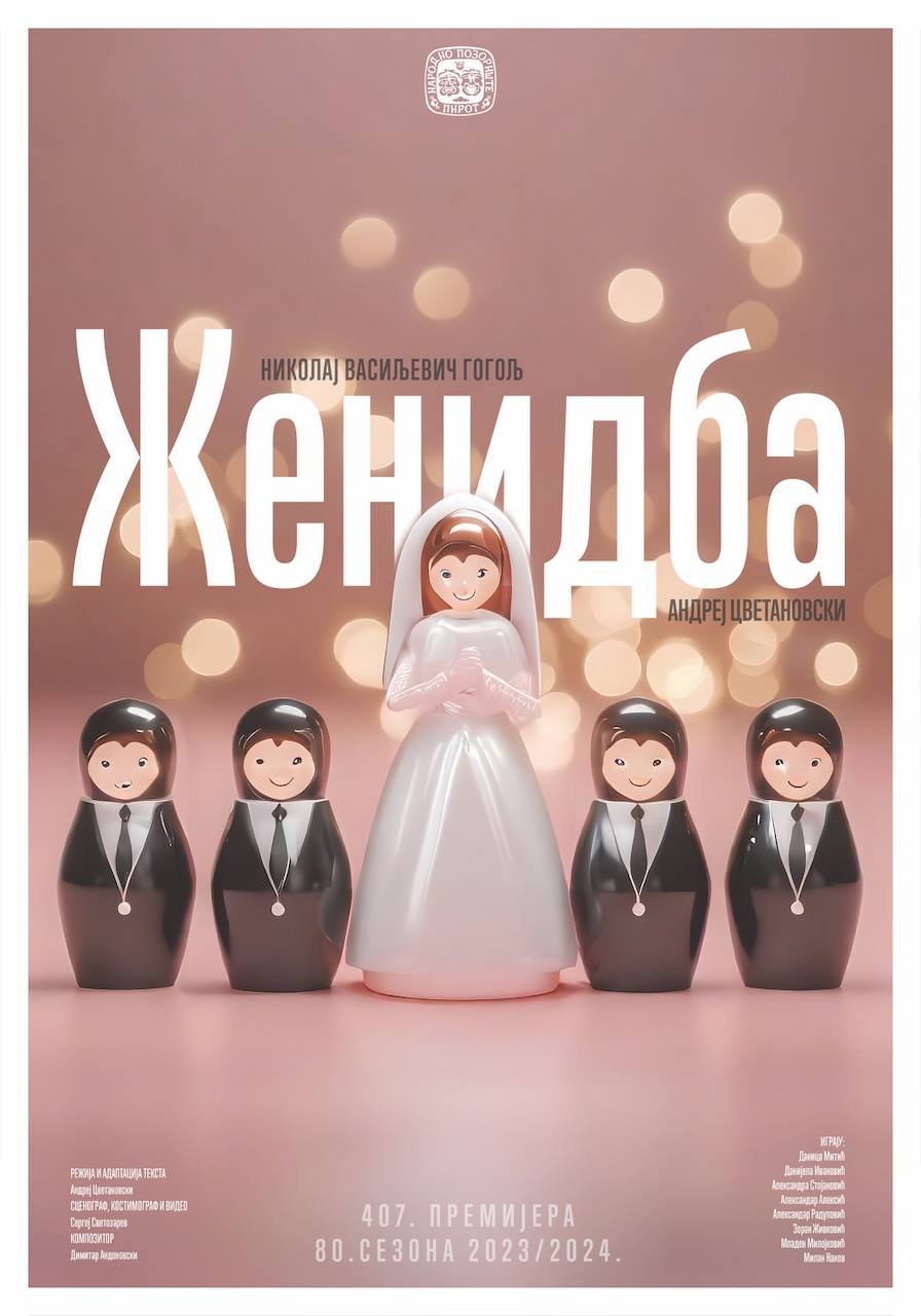U sredu 10.aprila 2024.  sa početkom u 19:30  Narodno pozorište Pirot izvešće drugu reprizu komedije “ŽENIDBA” po tekstu N.V. Gogolja u  režiji Andreja Cvetanovskog. Cena ulaznice 350 rsd, kažu u Narodnom pozorištu Pirot.