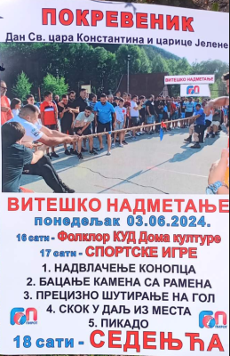 Pokrevenik slavi svoju slavu u ponedeljak – organizuje se SEDENJĆA, sportske igre, dolaze najbolji FOLKLORCI DOMA KULTURE!