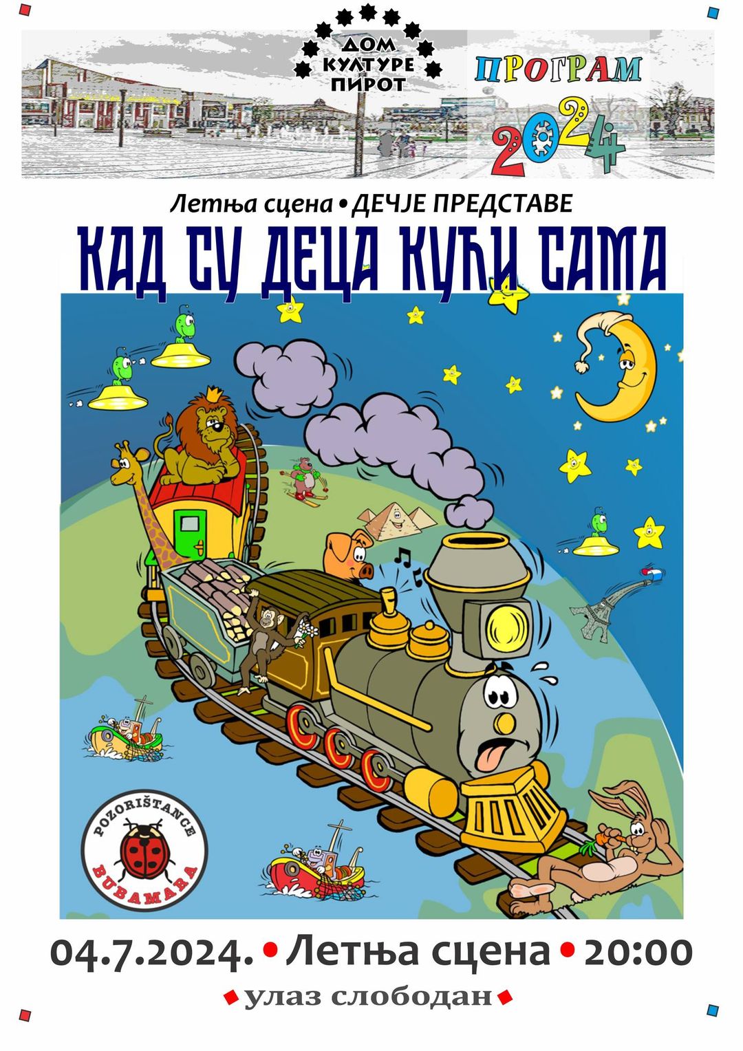 Dan kasnije, 4. jula, mališane očekuje još jedna “poslastica”. Dolazi Pozorištance “Bubamara” sa komadom “Kad su deca kući sama”.