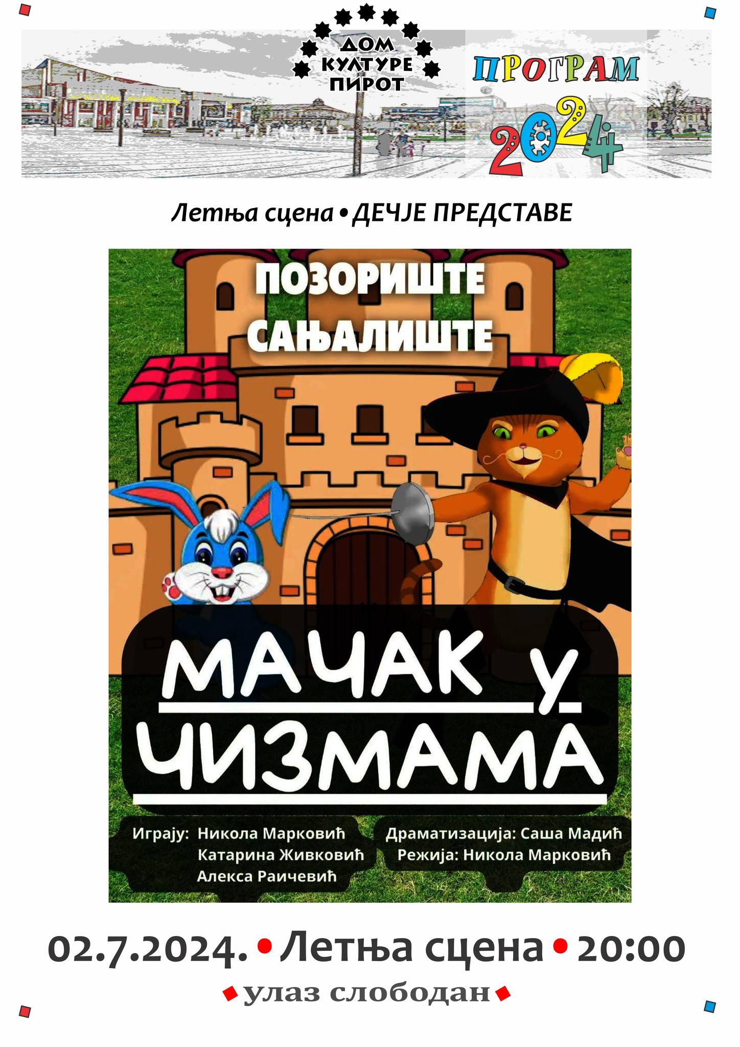 Veliki broj pirotksih mališana sinoć je uživao u prelepoj predstavi, a već večeras ih na istom mestu, u isto vreme, od 20 sati, očekuje još jedna dečja predstava – Mačak u čizmama.