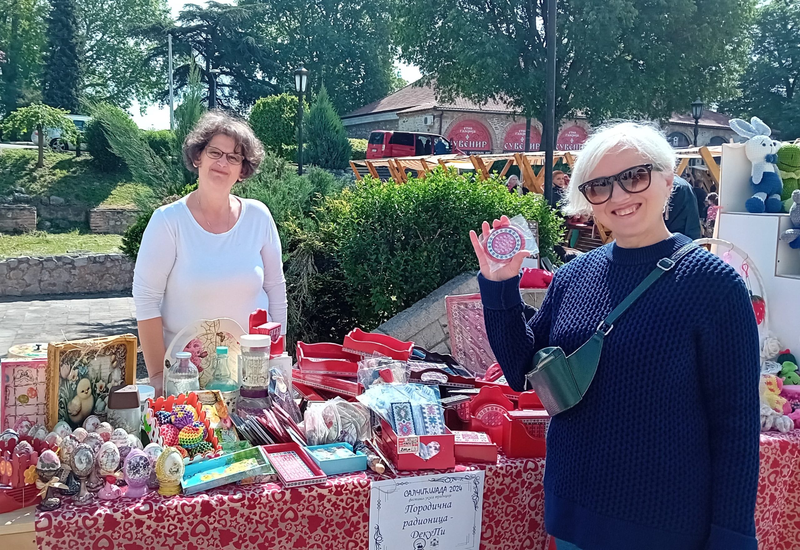Na Salčićijadi su učestvovale žene iz udruženja Izvorsko zrno i Klok, Malina Simonović, Zadruga Ponišavlje, Dragan i Lela Panić i radionica Dekupi sa svojim suvenirima.