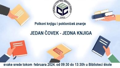 Srednja stručna škola organizuje još jednu u nizu akciju pod simboličnim nazivom “Jedan Čovek – Jedna Knjiga”. -Pozivamo vas da…