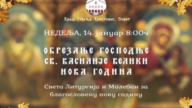 U hramu Rođenja Hristovog u Pirotu, Pazarskoj crkvi, sutra, u nedelju, u 8 sati, biće služena Sveta liturgija i Moleban…