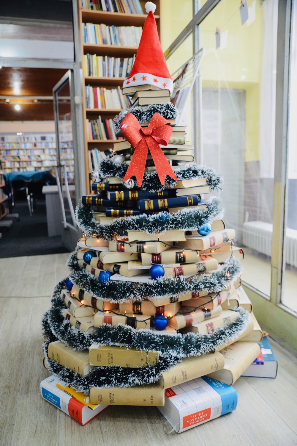 Narodna biblioteka Pirot: Novogodišnja jelka od knjiga (FOTO)