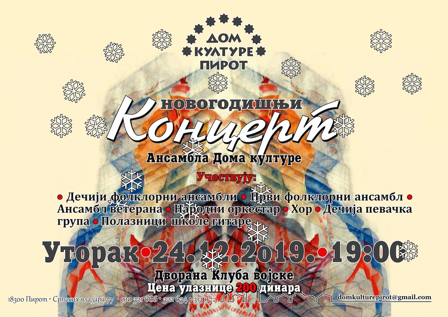 Novogodišnji koncert pirotskih folkloraca – “Prošeta se Jovka Kumanovka”. Nastupa 260 folkloraca