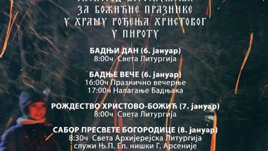 Tokom predstojećih božićnih praznika u Hramu Rođenja Hristovog – Pazarskoj crkvi, najpre će na Badnji dan, 6. januara, biti služena…