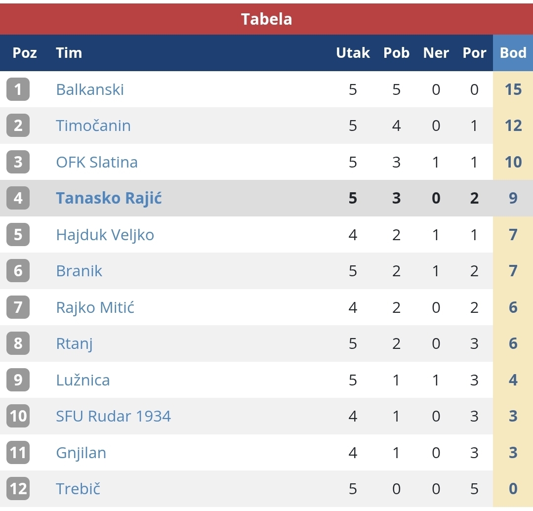 Nakon ovog trijumfa, Tanasko Rajić se popeo na četvrto mesto na tabeli Zone Istok i sa više samopouzdanja dočekuje naredni meč. U 6. kolu Piroćanci gostuju u Majdanpeku ekipi SFU Rudar 1934. Utakmica je na programu u nedelju, 21. septembra od 15:30 časova.