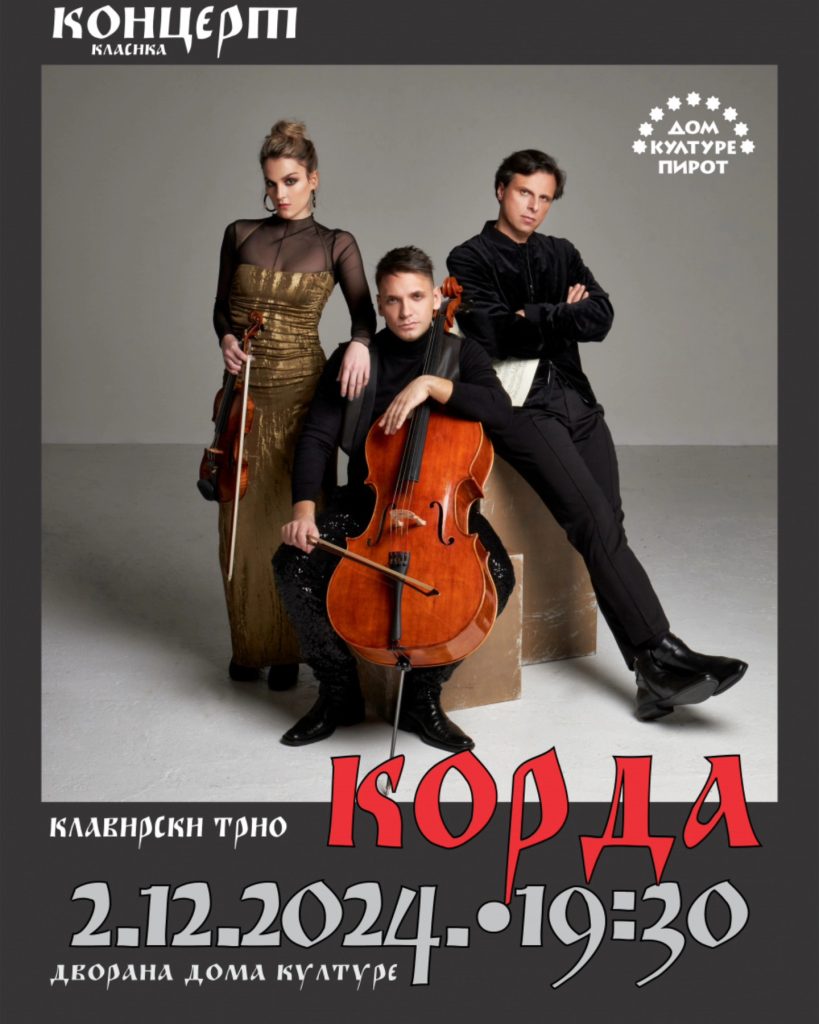 VEČERAS u Domu kulture u Pirotu: Koncert klasične muzike, nastupa klavirski trio KORDA