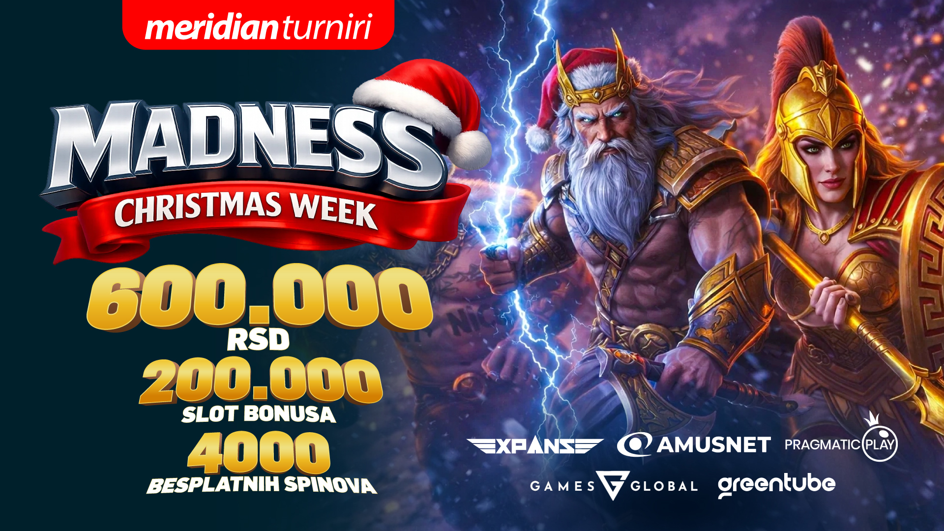 Decembar u Meridianu je rezervisan za posebno uzbuđenje, a sam kraj godine donosi vrhunac kroz Decembar Mega Mix i njegov praznični dragulj – Madness Christmas Week.