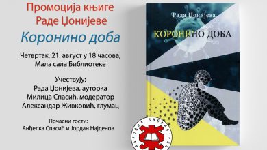 U četvrtak, 21. avgusta u Maloj sali Biblioteke, sa početkom od 18 časova, biće održana promocija knjige Rade Džonijeve “Koronino…